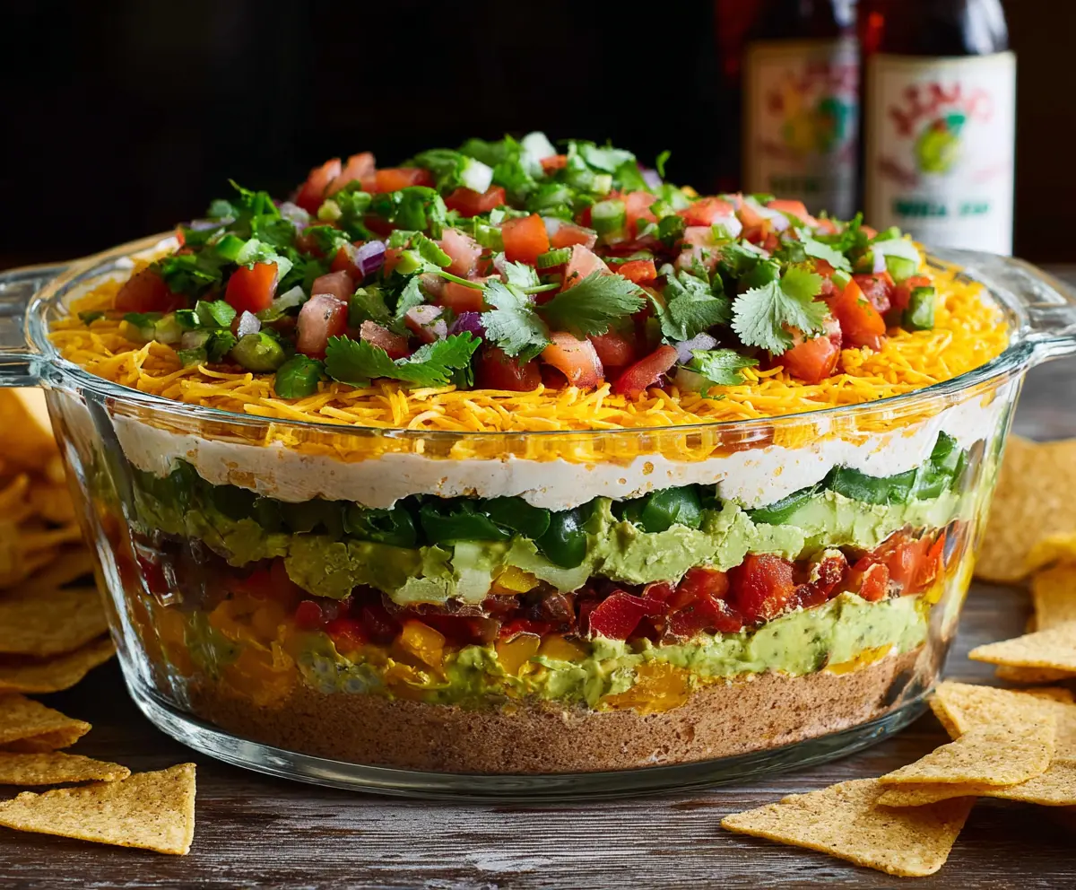 This 7 Layer Dip is a colorful and fun dish perfect for parties! Packed with layers of creamy cheese, guacamole, salsa, and more, it’s a real crowd-pleaser.