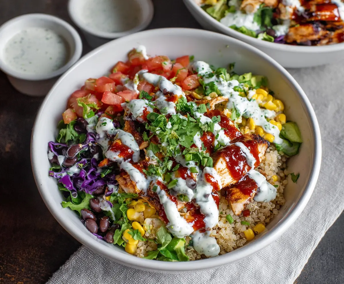 This BBQ Chicken Ranch Bowl is a fun meal that’s packed with flavor! It mixes tender chicken with zesty BBQ sauce, creamy ranch, and fresh veggies for a tasty bite every time.