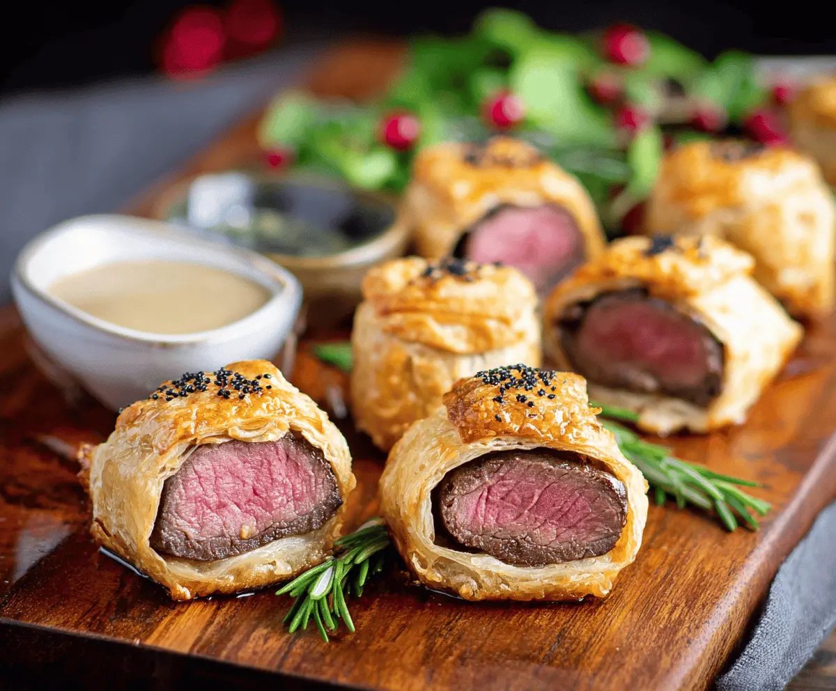 Beef Wellington Bites are little pieces of joy with tender beef tucked inside flaky pastry. They pack all the flavor of the classic dish in a fun, bite-sized form!