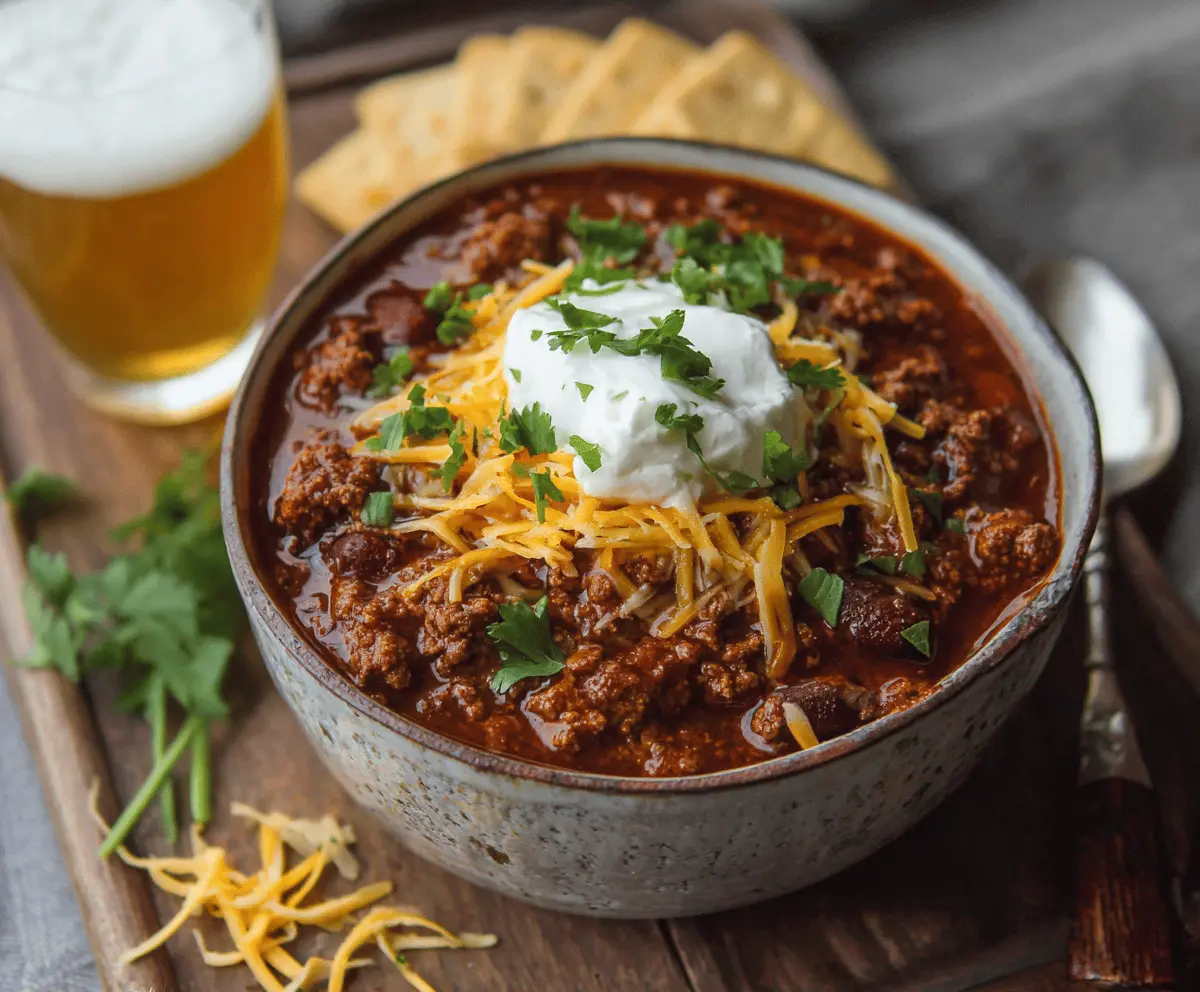 This beer chili is comforting and packed with flavor, perfect for any gathering or a cozy night at home. Enjoy every delicious bite!