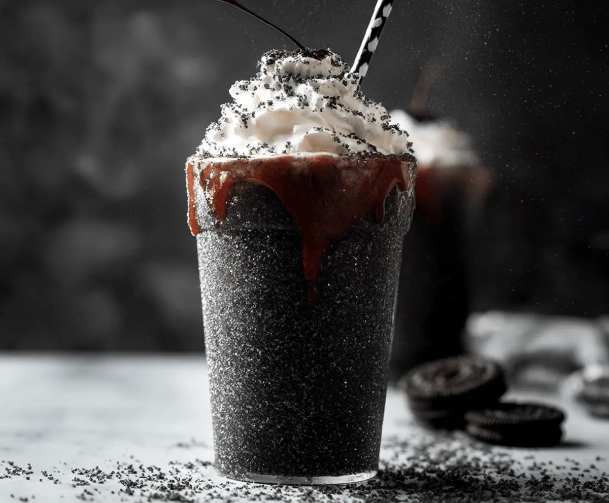 This black milkshake is sure to impress anyone who sees it and tastes it. Perfect for special occasions or just a sweet treat to enjoy on a regular day! 🍫🥤