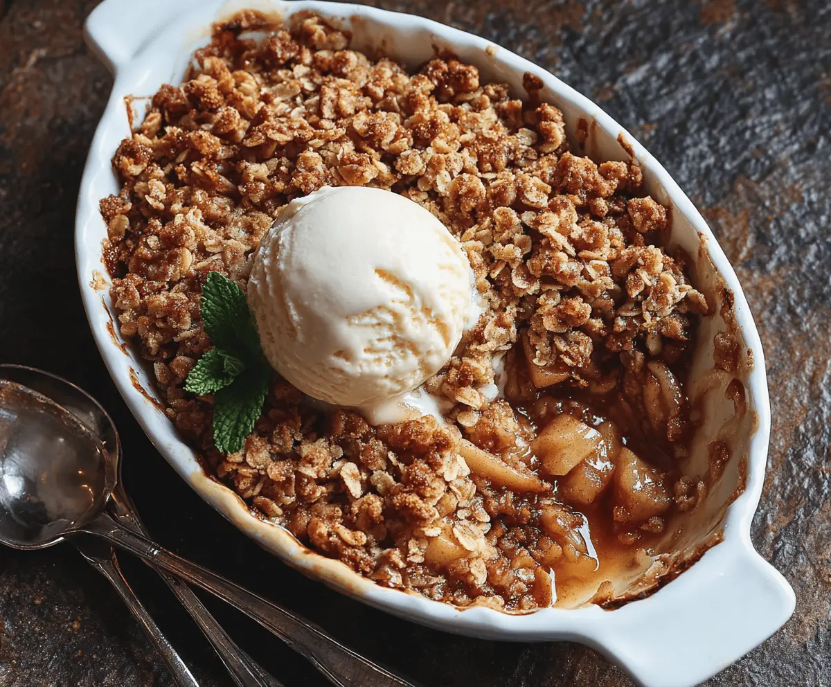 Once done, remove your crisp from the oven and allow it to cool for about 10 minutes. This makes it easier to serve! Enjoy it warm with a scoop of vanilla ice cream on top if you like—a wonderful combination!