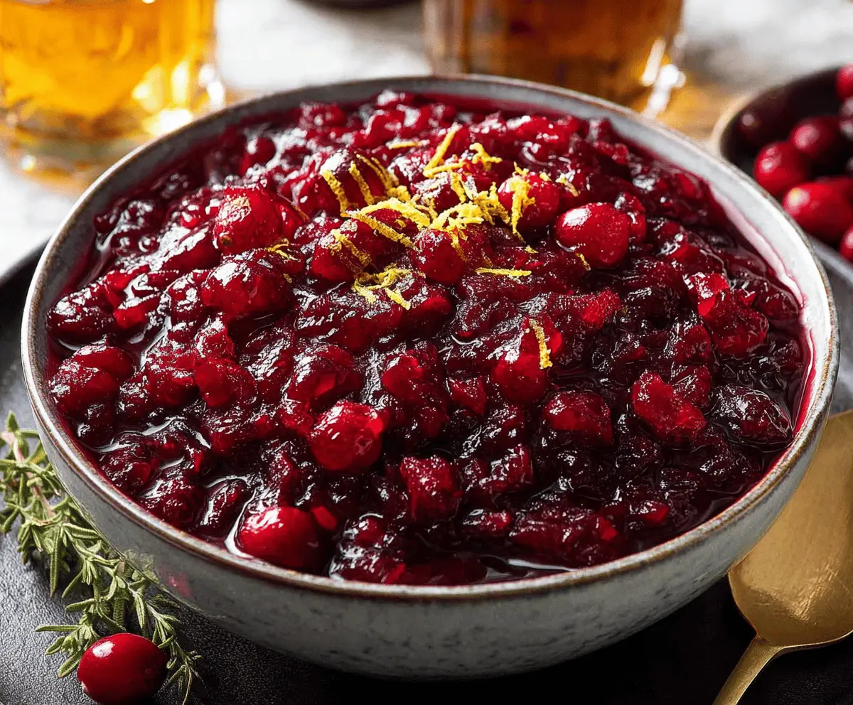 Transfer your beautiful bourbon cranberry sauce to a serving bowl. For a lovely finishing touch, garnish it with some additional orange zest and a small sprig of rosemary if you used it before.