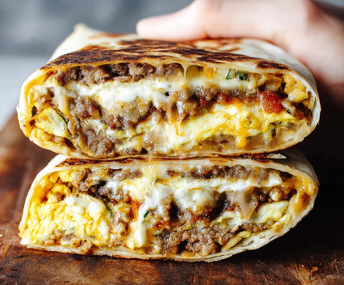 This Breakfast Crunchwrap is a tasty and fun way to start your day! It’s filled with eggs, cheese, and your choice of bacon or sausage, all wrapped up in a soft tortilla.