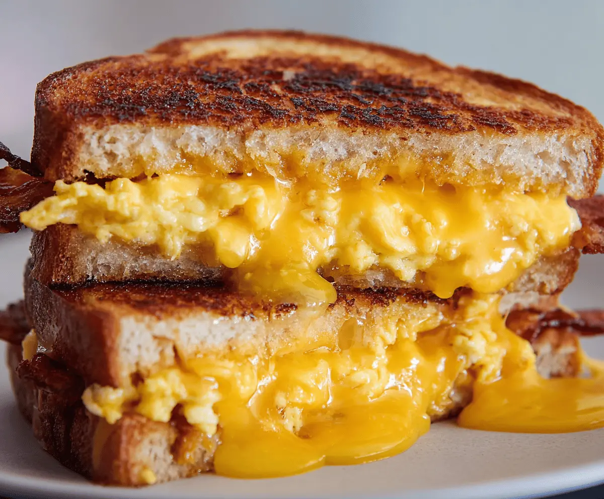This Breakfast Grilled Cheese is a morning dream! With gooey cheese, crispy bread, and the option to add eggs or bacon, it’s the perfect start to your day!