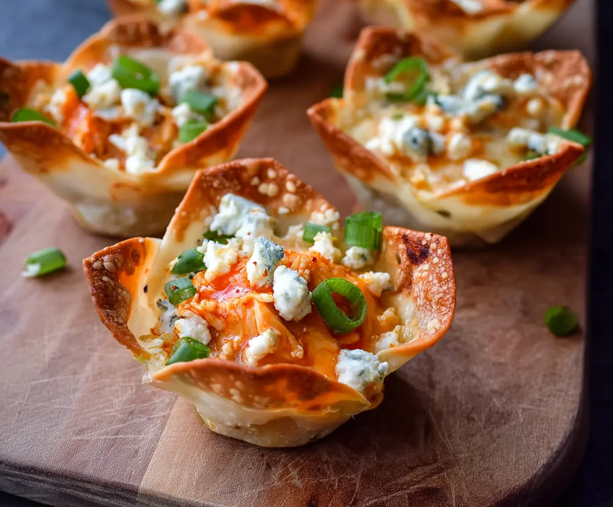 Buffalo Chicken Wonton Cups are tasty little bites that combine spicy buffalo chicken with crispy wonton wrappers. They are great for parties or a fun snack at home!