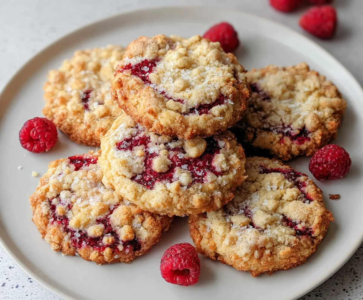 These Buttery Raspberry Crumble Cookies are sweet and crumbly with a delicious raspberry filling. They are perfect for a snack or dessert that makes your taste buds dance!