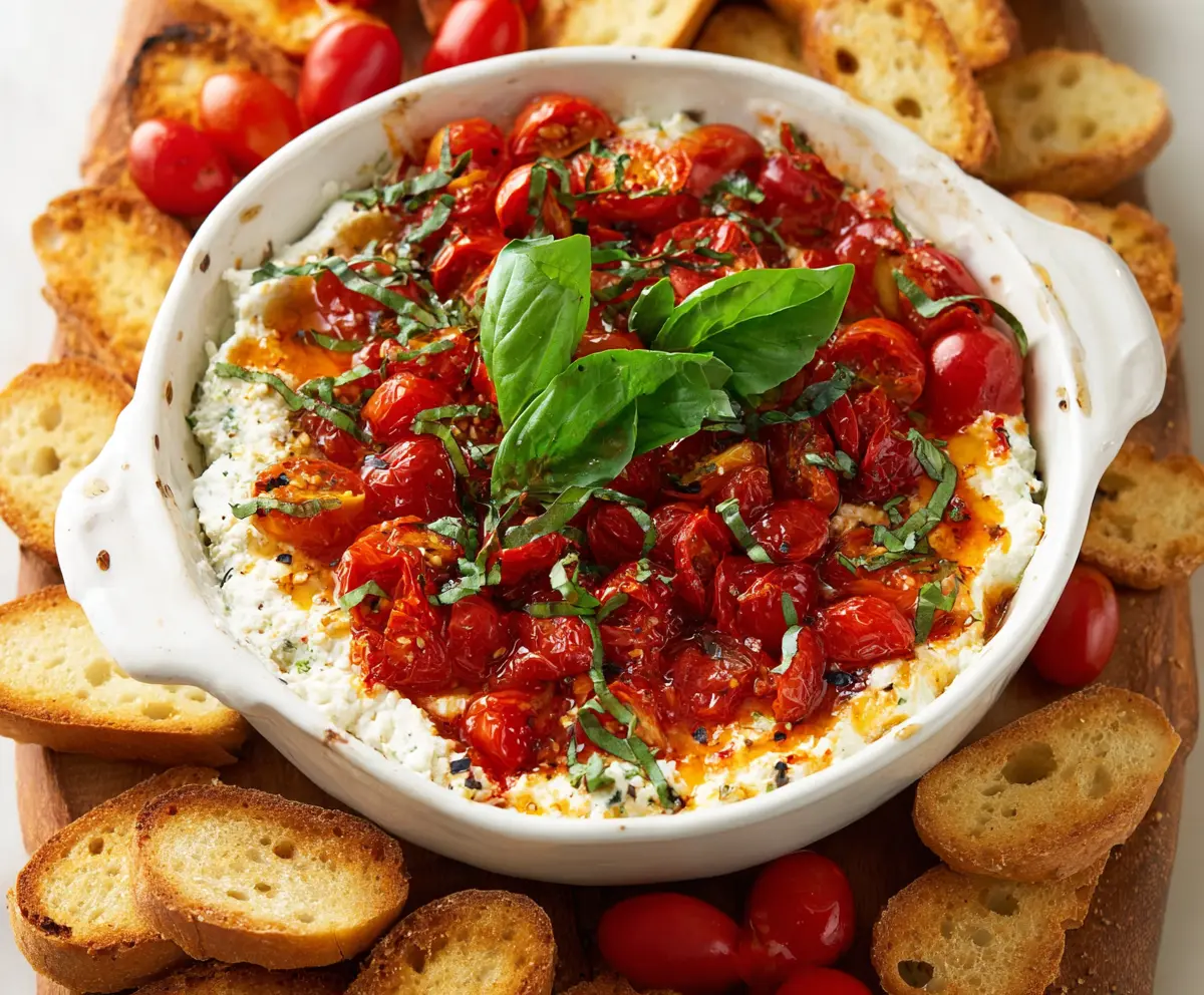Serve your Caprese Dip immediately with toasted baguette or crostini slices for dipping. Enjoy this fresh, creamy, and flavorful appetizer at your next get-together!