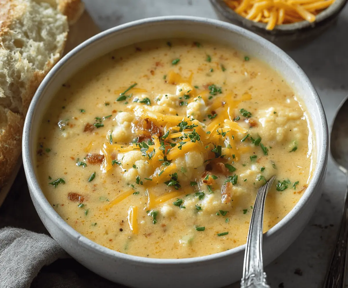 This rich, velvety Cheddar Cauliflower Soup is the perfect comfort food, packed with flavor and nourishing ingredients. Enjoy your cozy meal!