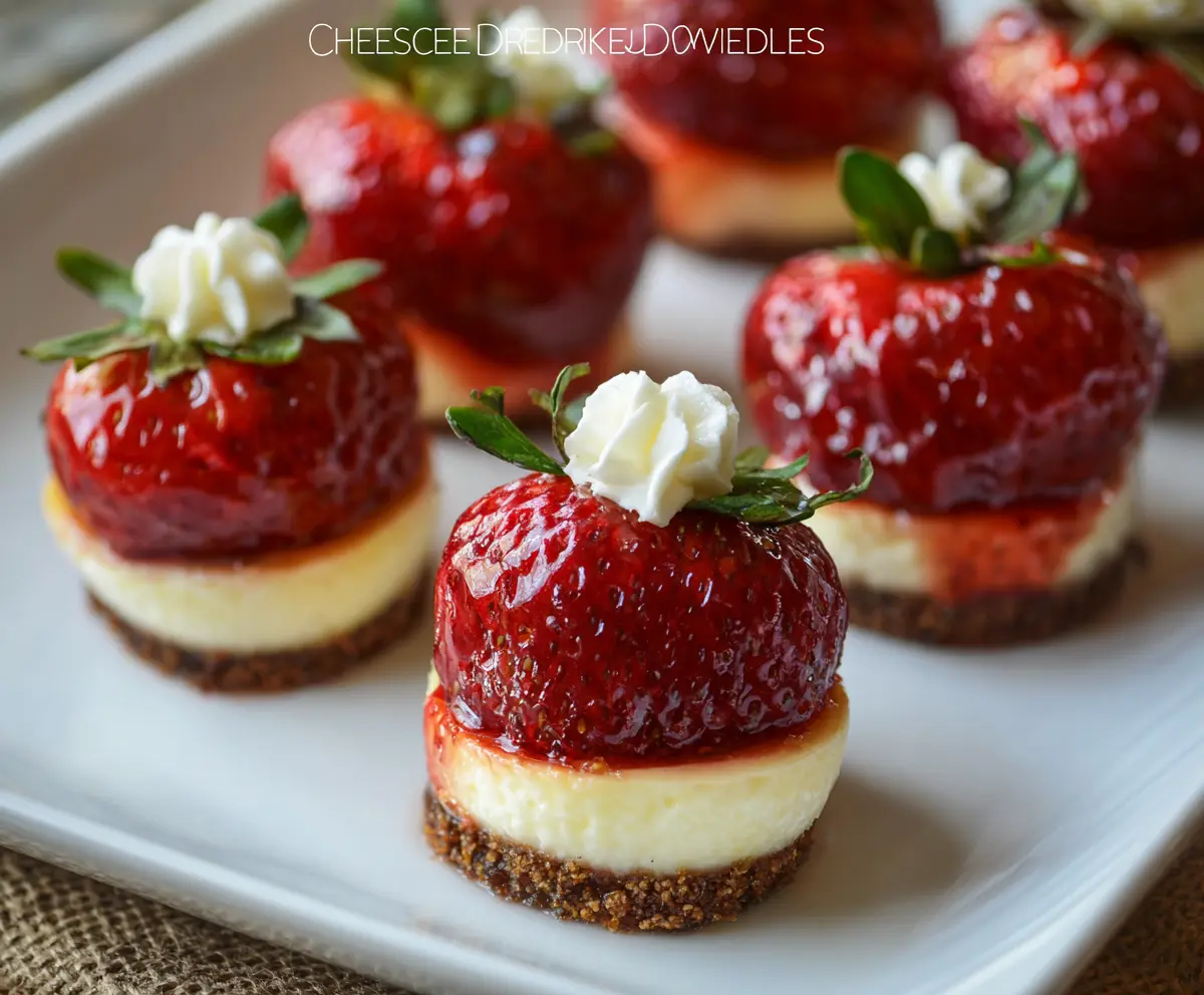 If you’re using a whole cheesecake, slice it into small rounds that will fit the strawberries well, or simply grab some mini cheesecakes. Place one cheesecake round on your serving platter to create a perfect base.