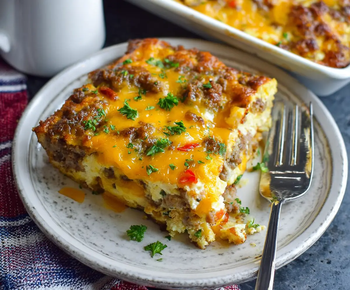 This Cheesy Sausage Breakfast Casserole is warm and comforting, packed with savory sausage, eggs, and lots of gooey cheese. It’s perfect for a cozy morning or a fun brunch with friends!