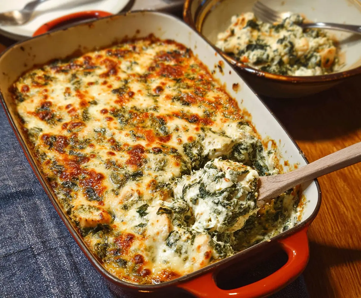 This Chicken and Spinach Casserole is a warm and comforting dish full of tender chicken, fresh spinach, and creamy cheese. It’s easy to prepare and perfect for busy nights!