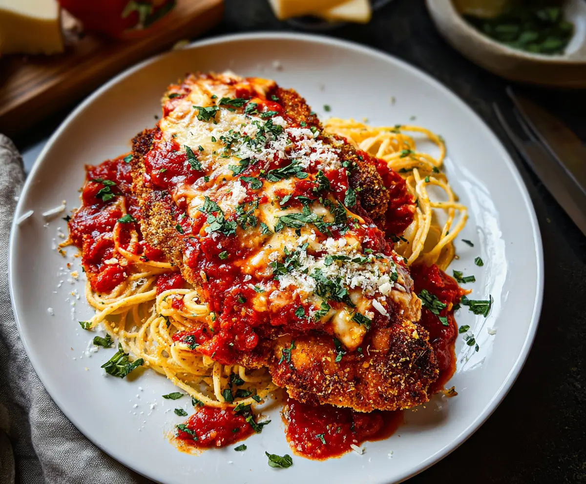 This Chicken Parmesan is a tasty dish where crispy, breaded chicken is topped with rich marinara sauce and melted cheese. It’s a comforting meal that hits the spot!