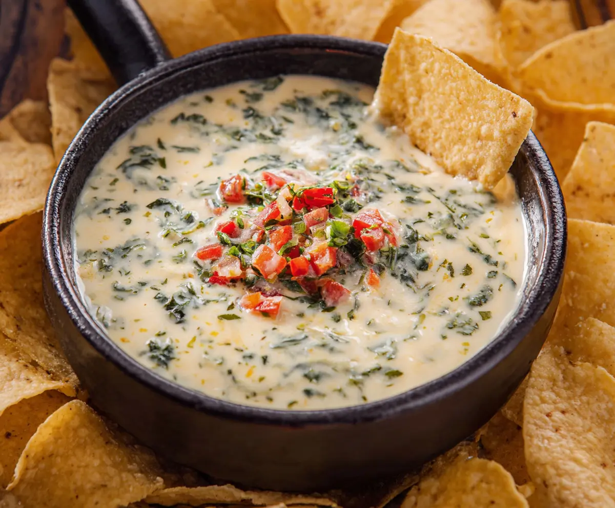 Enjoy your creamy, flavorful Chili’s-style White Spinach Queso!”