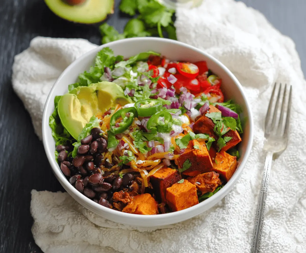 These Chipotle Sweet Potato Burrito Bowls are a colorful and tasty meal! With soft sweet potatoes, beans, and fresh toppings, they’re a feast for your taste buds.