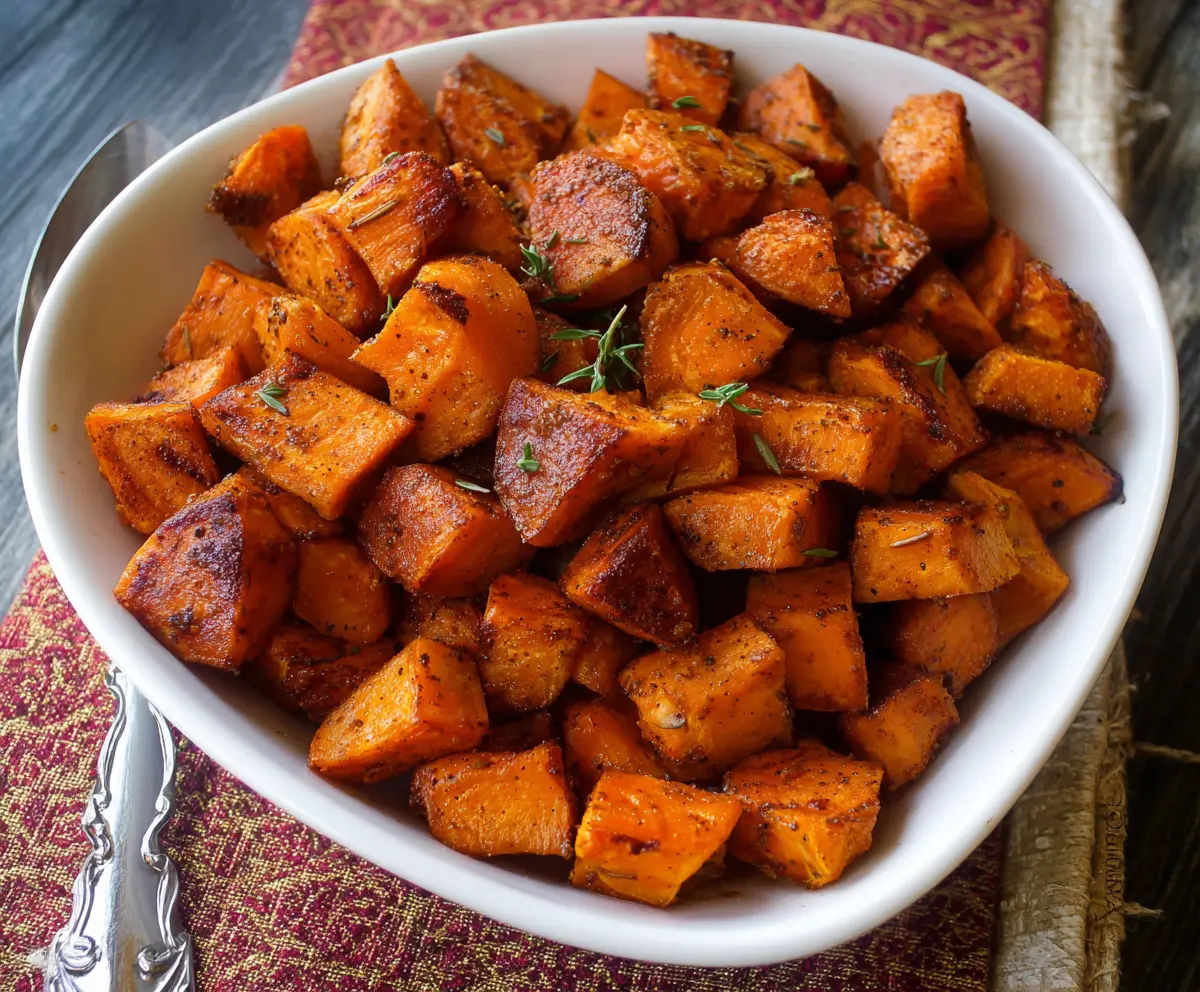 These cinnamon-spiced roasted sweet potatoes are delicious served warm as a side dish or even as a healthy snack. Enjoy every bite of this flavorful treat!
