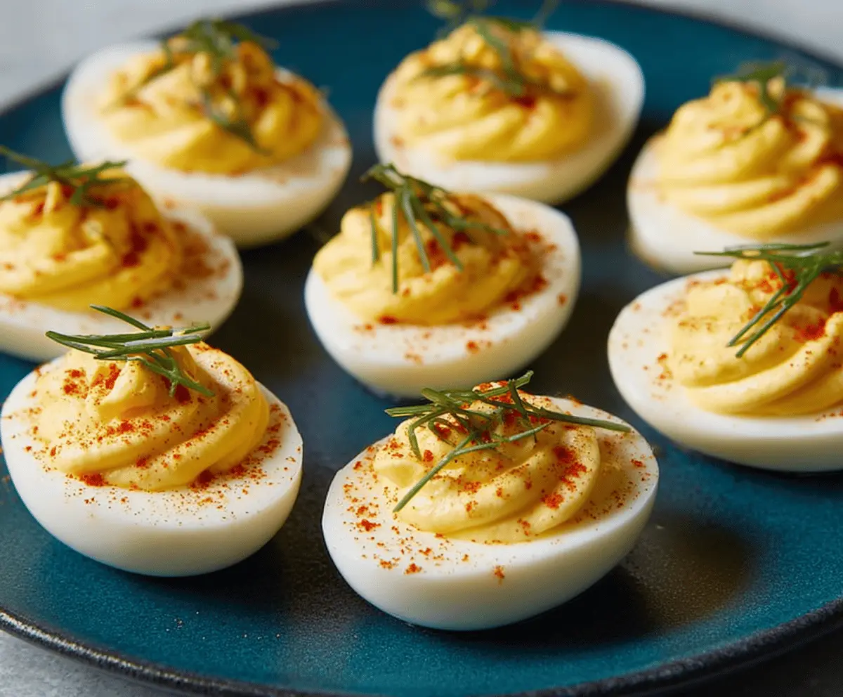 Lastly, sprinkle a little paprika over the filled eggs for that classic touch. For an extra pop of color and flavor, garnish with small pieces of fresh chives or parsley. Cover the deviled eggs and place them in the refrigerator for at least 30 minutes to chill before serving. This gives the flavors time to meld beautifully!