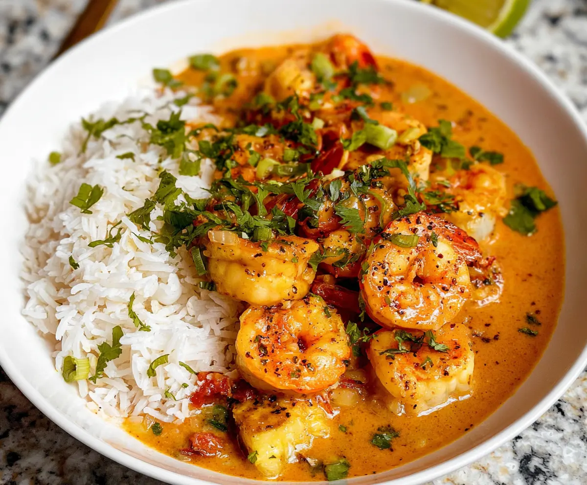 When I make this, I can’t help but smile at how quick it is to prepare. Serve it over rice for a complete meal that’ll make everyone ask for seconds! 🍤🥥