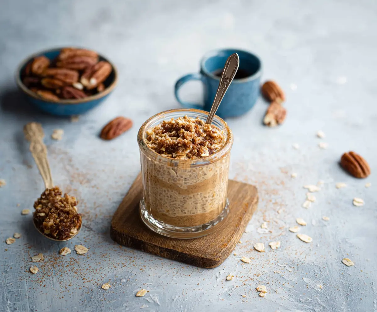 Gently stir in the chopped pecans, ensuring they are evenly distributed throughout the oat mixture. This adds a delightful crunch to your overnight oats!