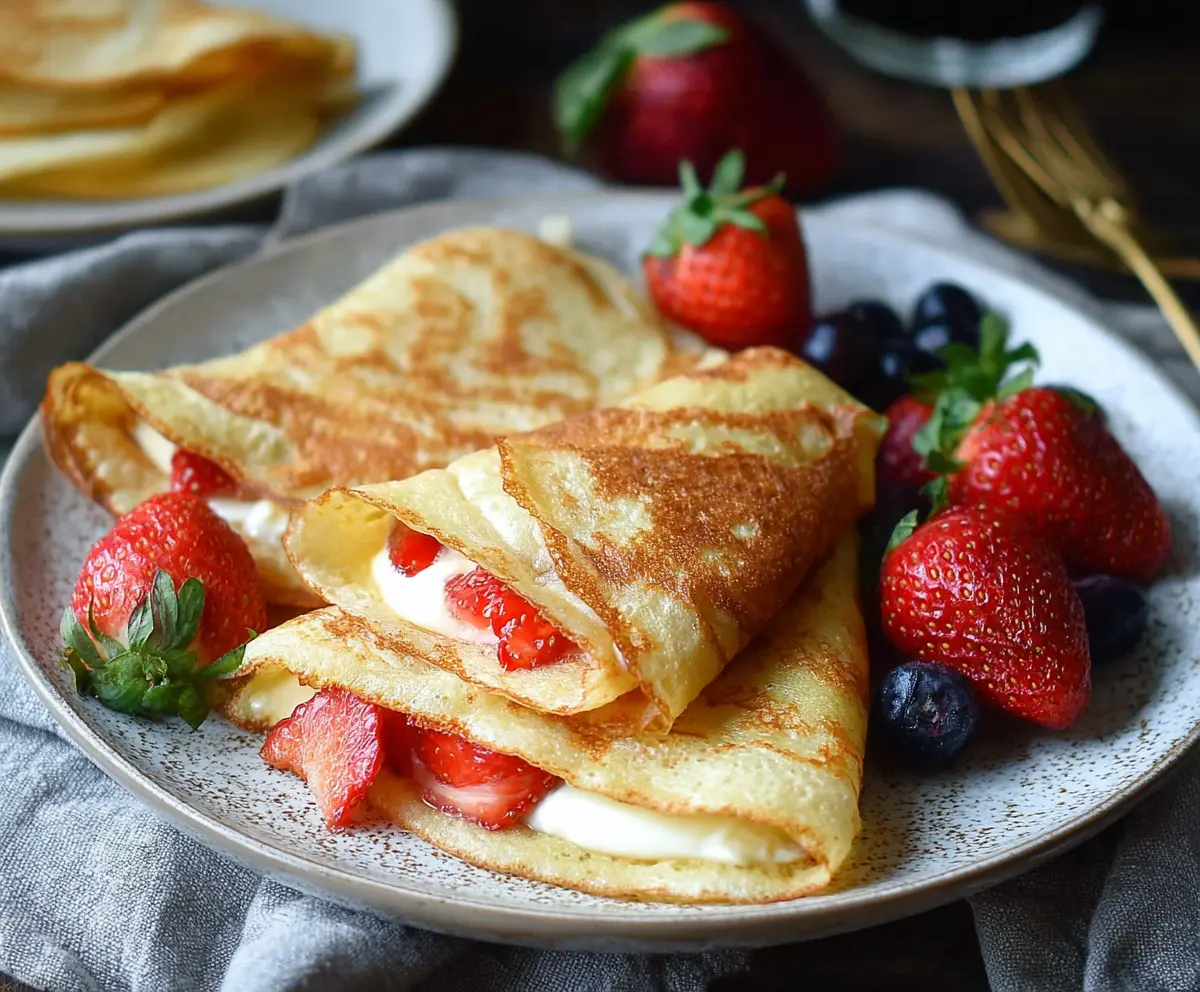 These cottage cheese crepes are fluffy and filled with cheesy goodness. They’re perfect for a tasty breakfast or a light lunch, and you can enjoy them with sweet or savory toppings!