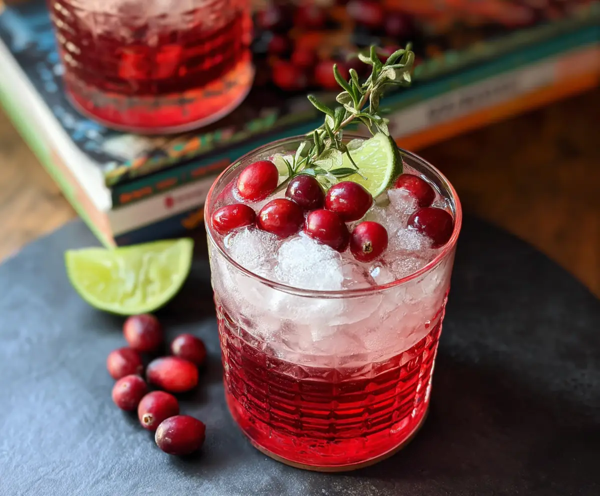 Add a fun touch by garnishing your drink! Skewer fresh cranberries onto a sprig of rosemary and place it in the glass. Pop a lime wheel on the rim for a splash of color and a hint of citrus.