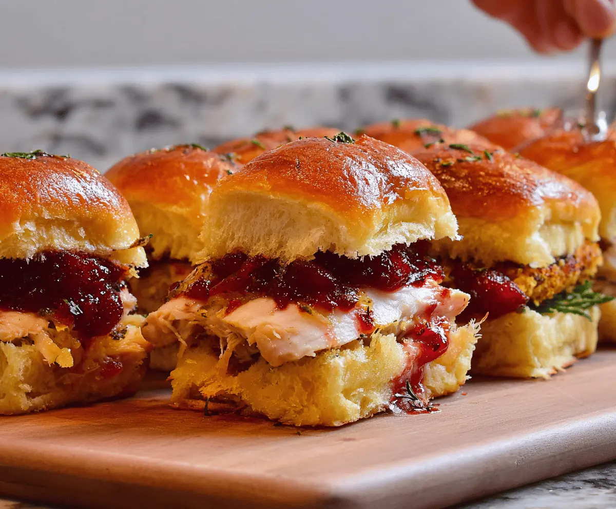 These sliders balance savory turkey and melted cheese with the sweet tangy burst of cranberry sauce inside soft, buttery buns—perfect for any occasion!