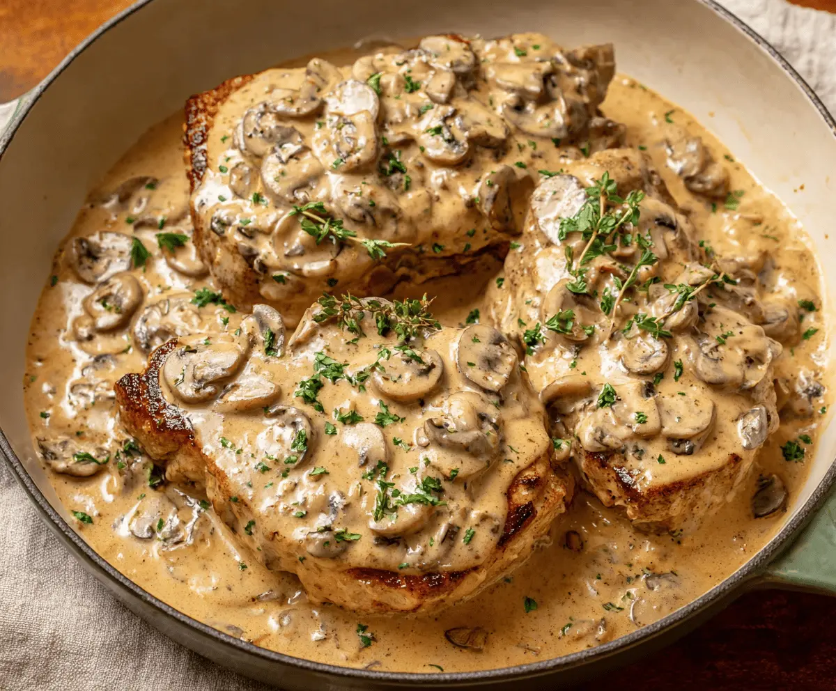 This method creates tender pork chops with a rich, creamy mushroom sauce that’s sure to impress. Bon appétit!