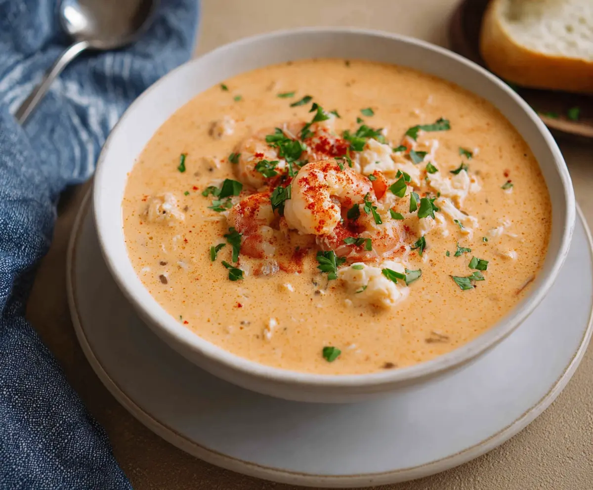 This creamy crab and shrimp seafood bisque is like a warm hug in a bowl! Loaded with fresh seafood and a rich, velvety texture, it will make your taste buds dance.