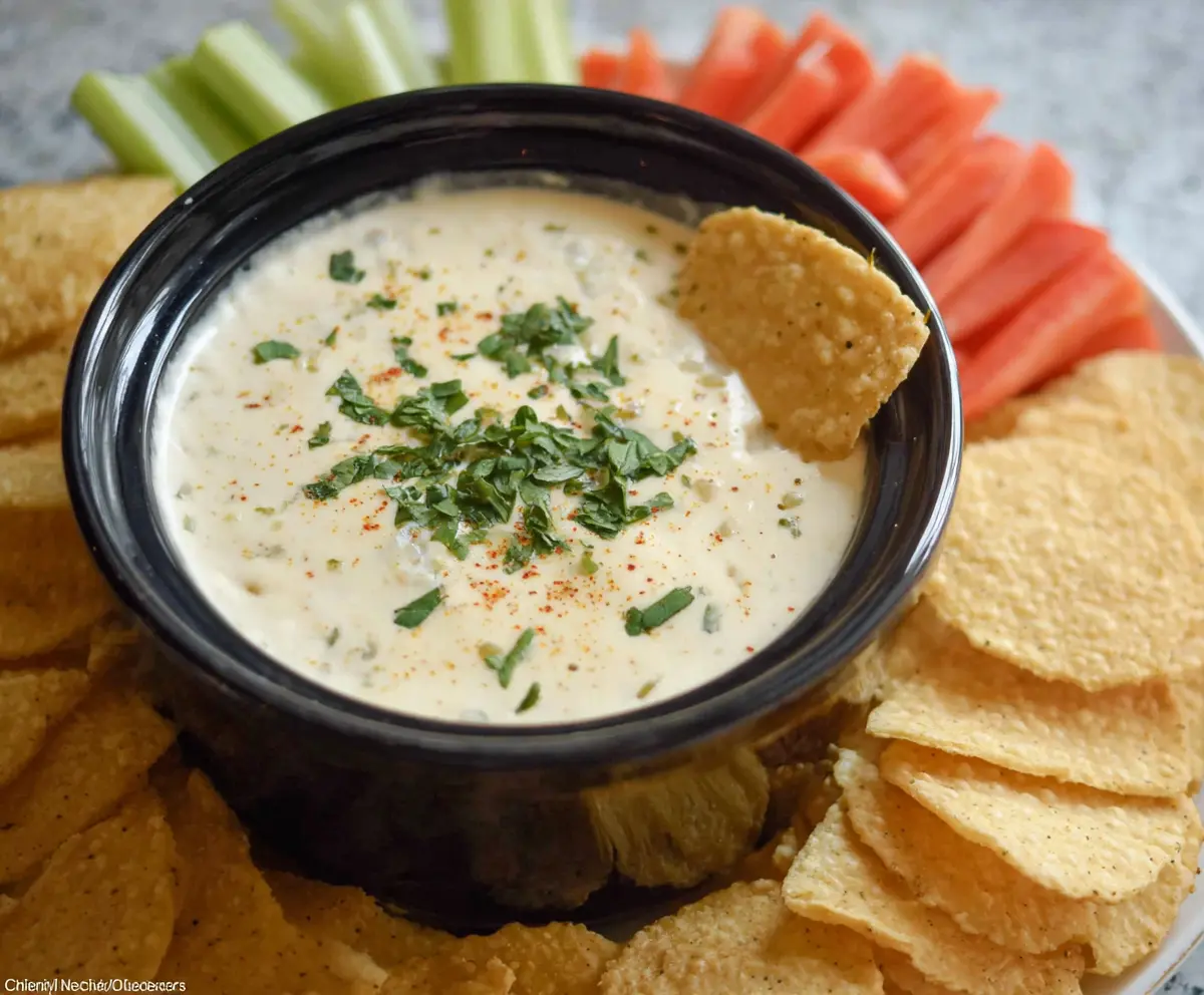 This rich and creamy white cheese dip is sure to be a hit at your next gathering. Enjoy!