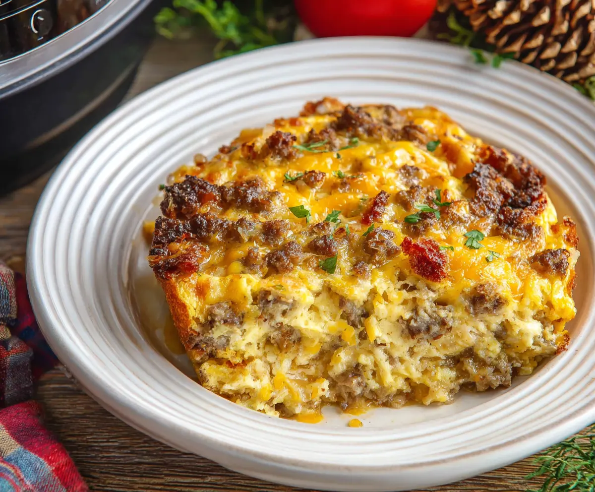 This Crockpot Christmas Breakfast Casserole is a warm hug in a dish! It’s made with eggs, cheese, sausage, and bread, all slow-cooked to perfection, making mornings stress-free and tasty.