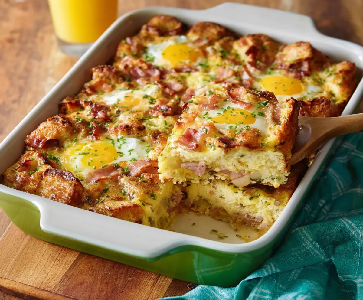 Getting your casserole perfectly set is all about the right soaking time and temperature. After pouring the egg mix over the bread and ham, press down firmly and let it soak for at least 15 minutes before baking. This allows the bread to absorb the liquid fully.
