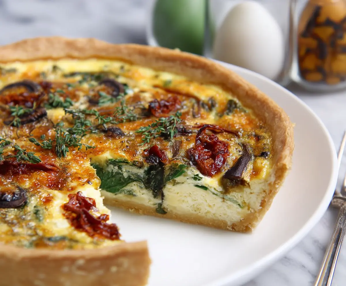 Once out of the oven, let the quiche cool for about 10 minutes. This cooling time makes it easier to slice and serve.