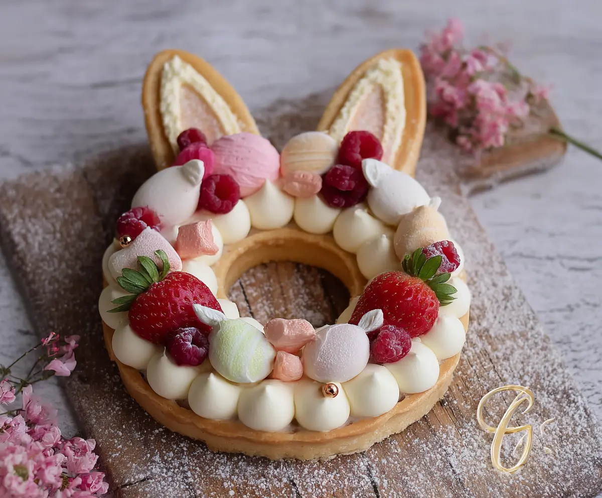 This delightful Easter Bunny Cream Tart will take about 1 hour of prep time and around 20-30 minutes to bake. Make sure to set aside some extra time for chilling the tart base for at least an hour before you put it all together. In total, you’re looking at about 2 hours before it’s ready to serve.