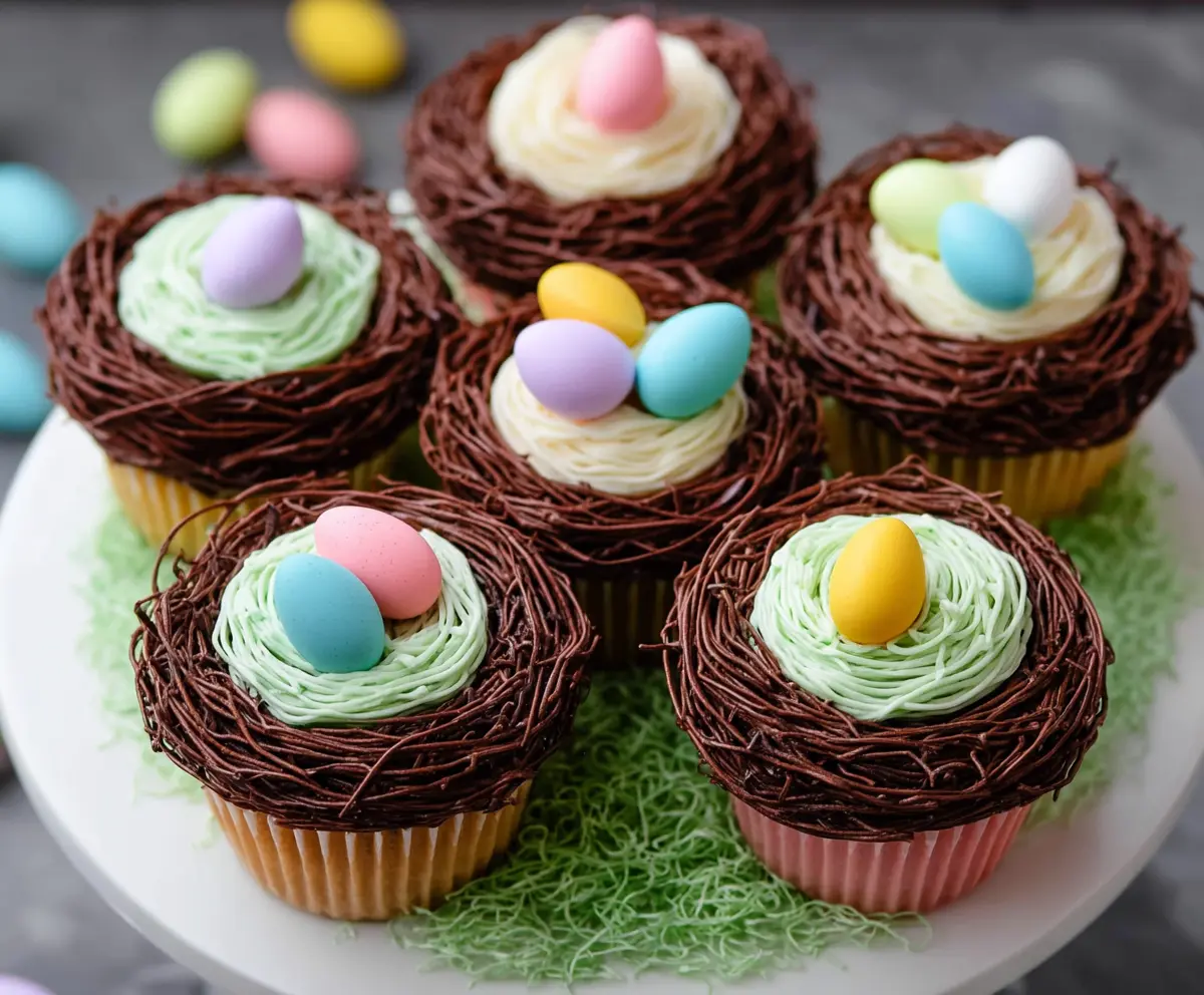 These cupcakes look like charming little bird nests, complete with colorful eggs. Enjoy making and sharing them with friends and family!