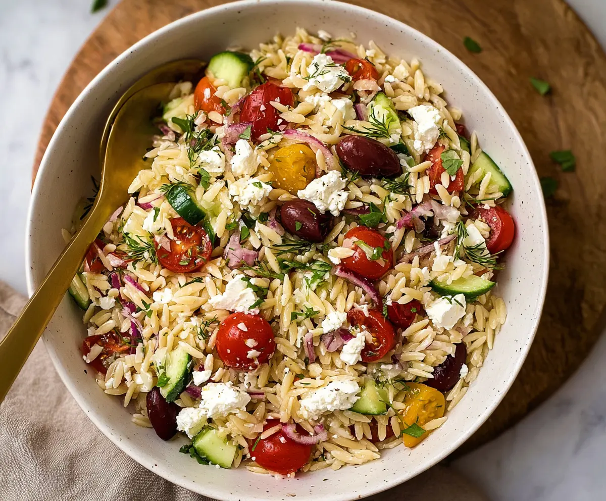 This Feta Orzo Salad is a colorful and tasty dish that brings together the flavors of creamy feta, fresh veggies, and perfectly cooked orzo pasta. It’s quick to make and super refreshing!