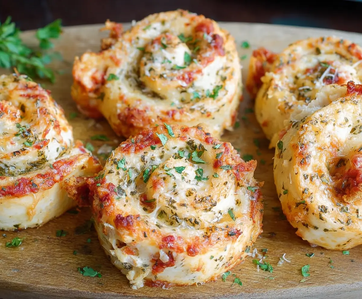 These Garlic Parmesan Chicken Pinwheels are sure to impress! They are crispy on the outside with a cheesy, garlicky filling inside. Perfect for parties, game day, or just because you deserve a tasty treat!