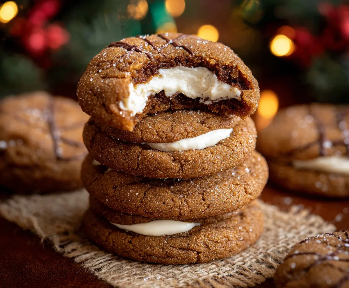 These Gingerbread Cheesecake Cookies mix the spicy goodness of gingerbread with yummy cheesecake filling. They’re soft, chewy, and perfect for the holidays!