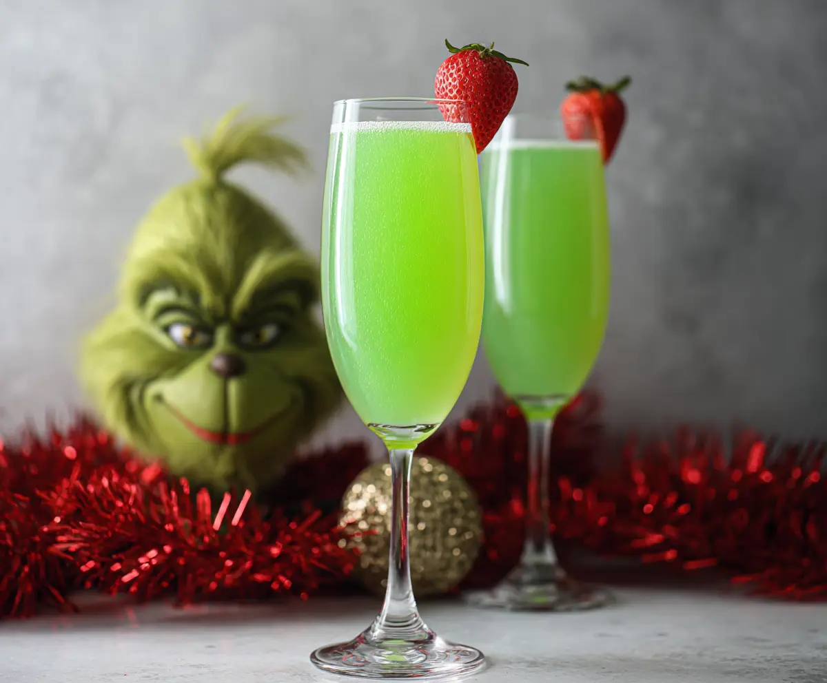 The Grinch Mimosa is a fun twist on the classic drink! This refreshing cocktail mixes sparkling wine with tangy cranberry juice, giving it a vibrant green color that’s perfect for the holidays.