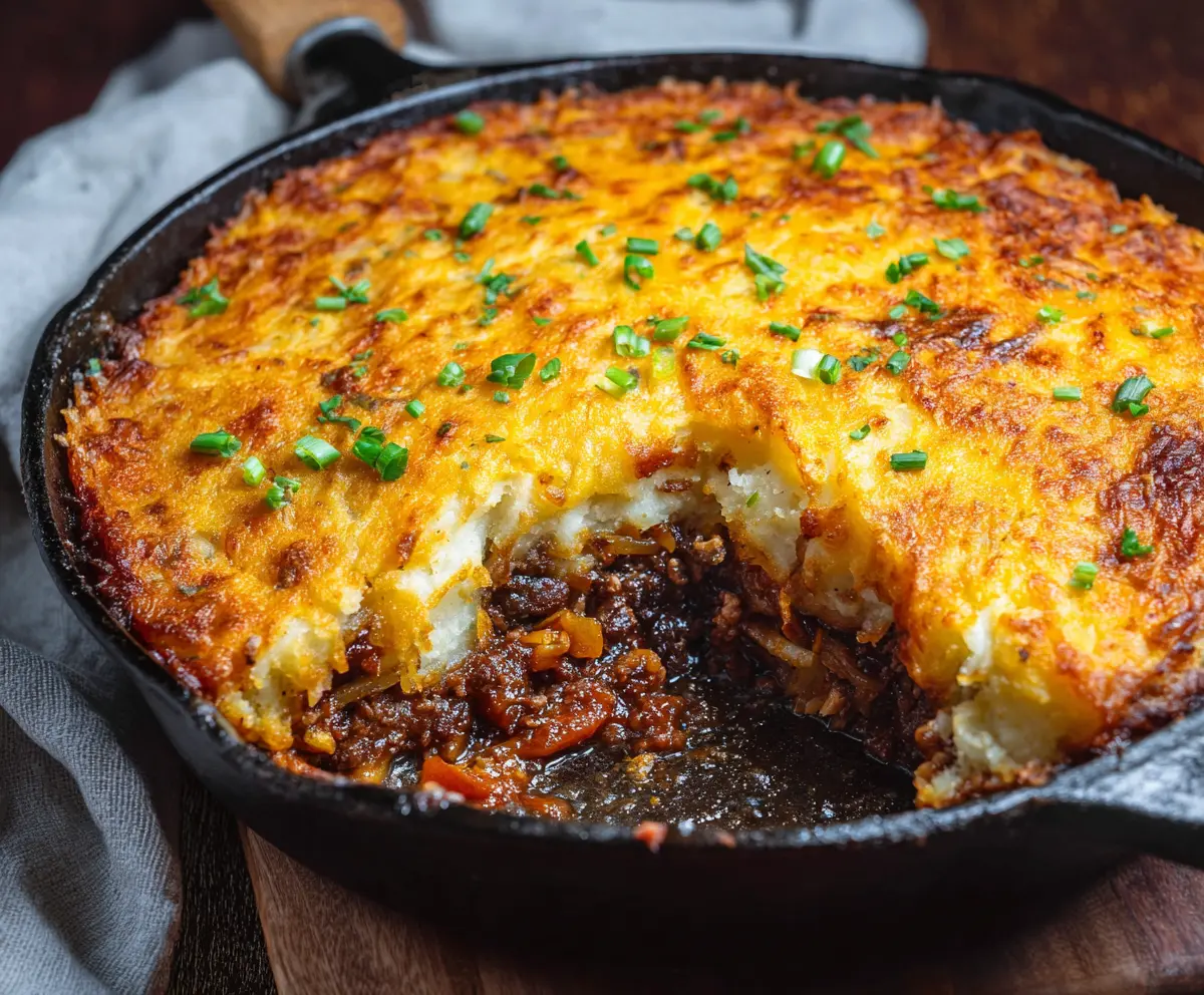 Before serving, garnish with fresh herbs. Enjoy your hearty, comforting Hash Brown Shepherd’s Pie!
