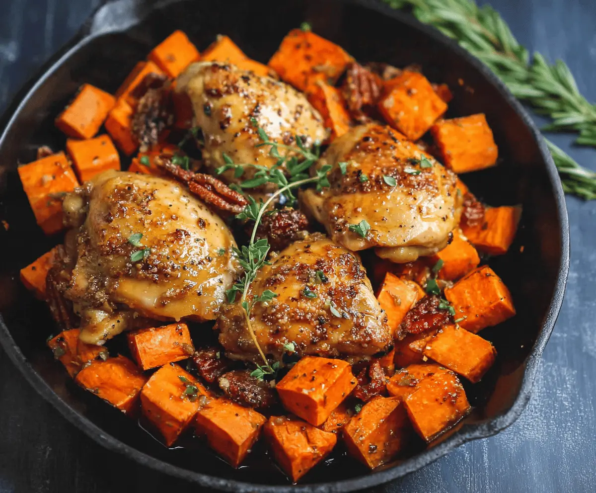 Store any leftovers in an airtight container in the fridge for up to 3 days. Reheat them gently in the microwave or on the stovetop over low heat to maintain the chicken’s juiciness and the sweet potatoes’ texture.