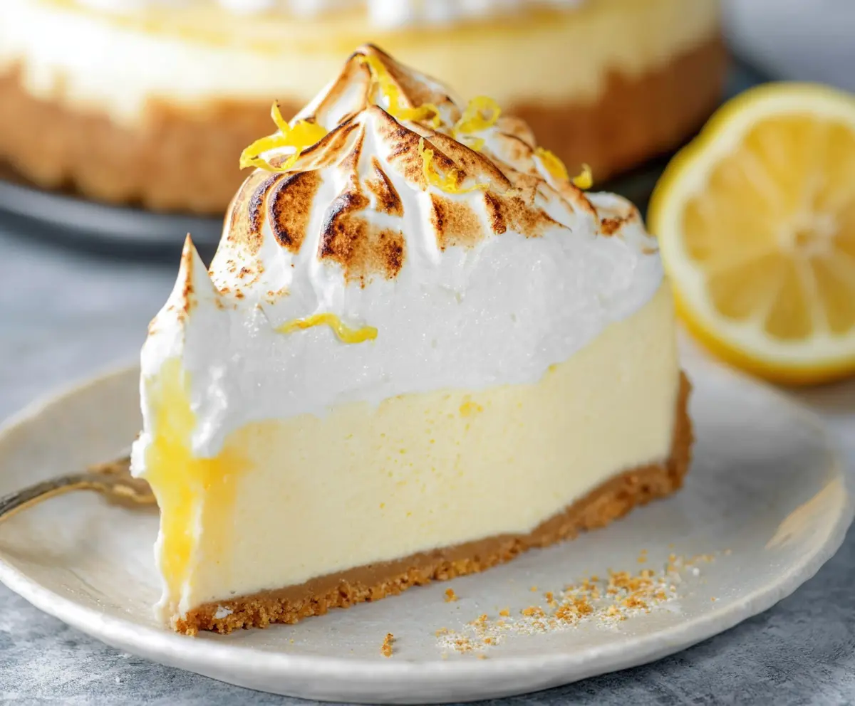 Lastly, add a lovely touch by decorating the top with fresh lemon slices or wedges. Slice your beautiful cheesecake and serve it chilled. Enjoy the delightful mix of tangy, creamy, and sweet flavors in your Lemon Meringue Cheesecake!