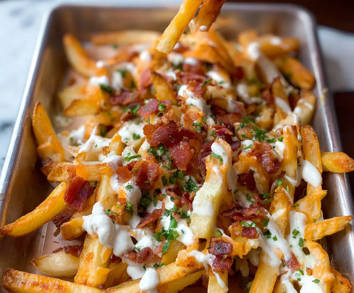 Grab a fork (or just dig in with your hands), and enjoy your Loaded Bacon Ranch French Fries while they’re still hot! Perfect as a snack, party food, or side dish.