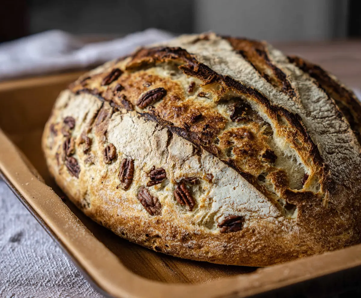 This recipe yields a wonderful sourdough loaf that’s crusty on the outside and tender inside, with delightful chunks of maple-roasted pecans. Enjoy every slice!