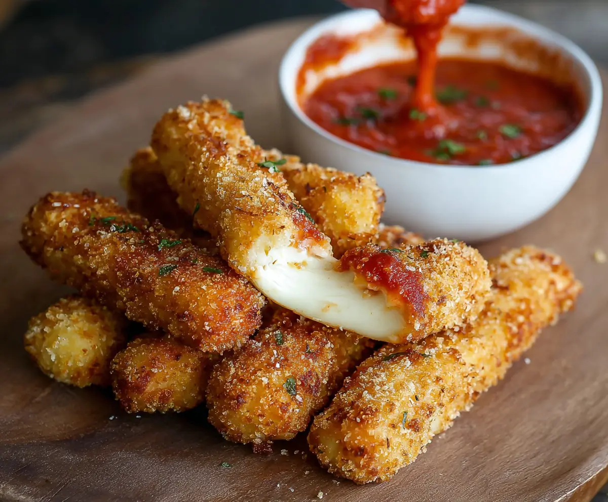 These mozzarella sticks are crispy on the outside and gooey on the inside, making them a fantastic snack or appetizer. They pair perfectly with tasty marinara sauce for dipping!
