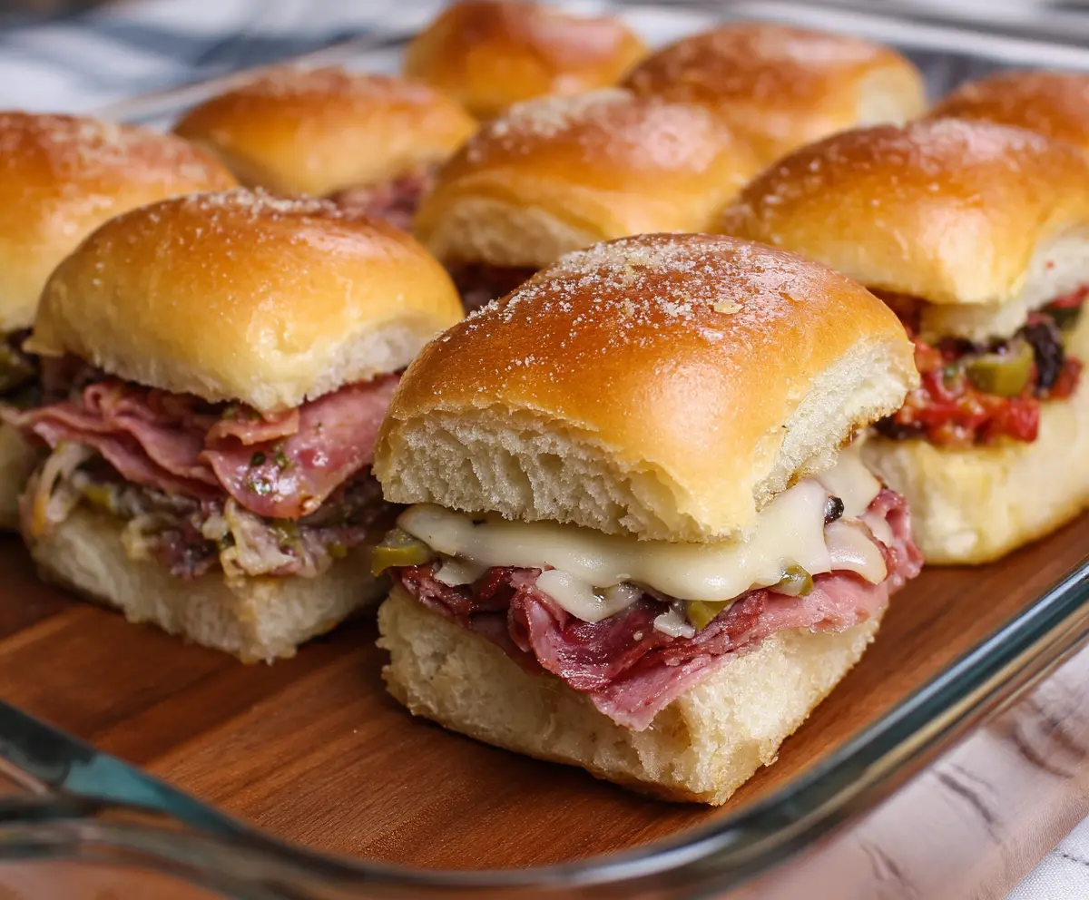 Muffuletta sliders are tiny sandwiches bursting with flavor! They use soft rolls filled with layers of salami, ham, provolone cheese, and a zesty olive salad. Perfect for snacking!