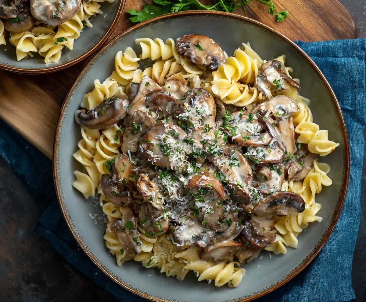 Remove the skillet from heat and sprinkle with fresh parsley and extra Parmesan cheese for a beautiful finish. Serve immediately and enjoy this comforting, flavorful mushroom pasta dish!