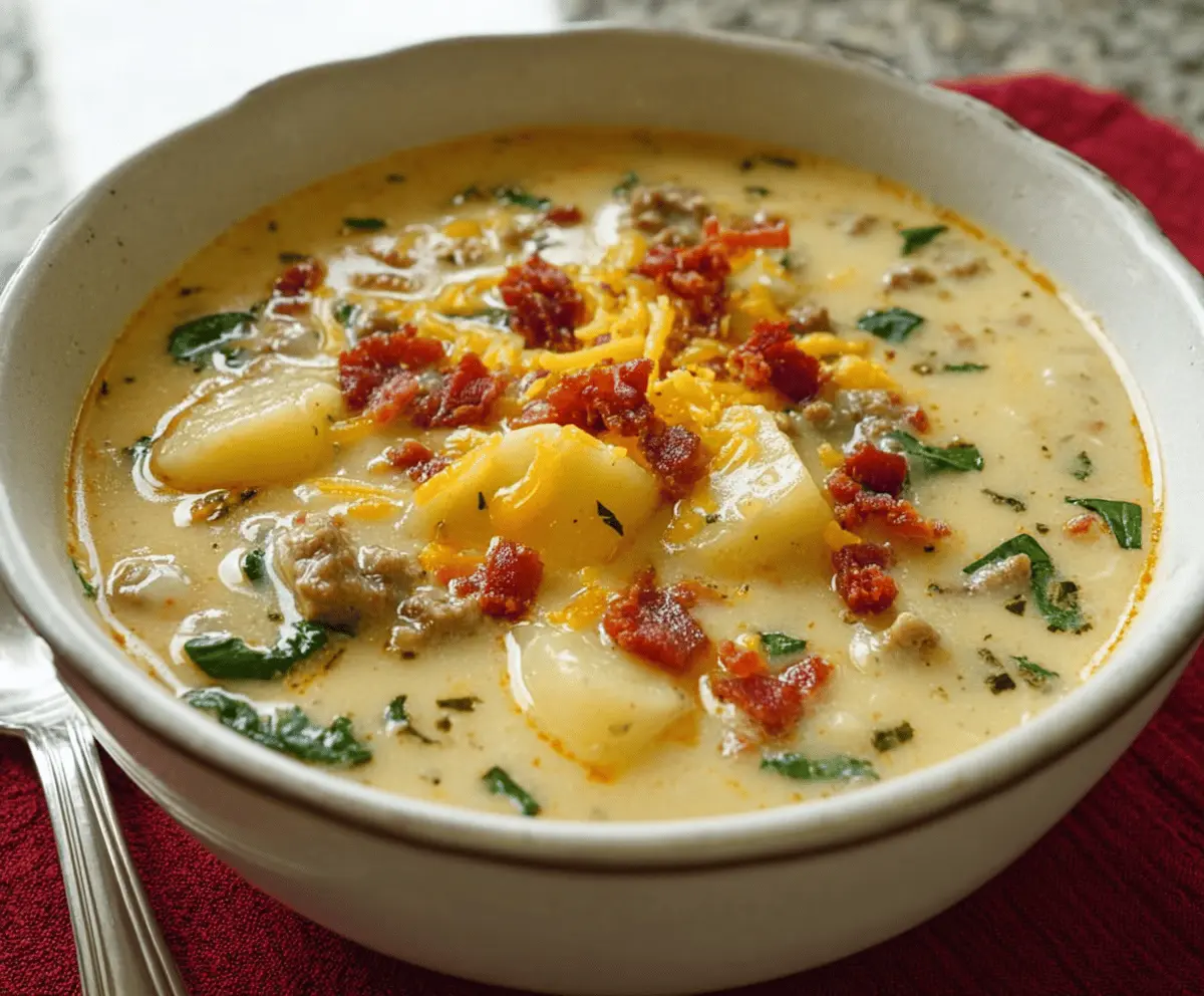 This hearty and creamy soup captures the essence of the Olive Garden classic, bringing together tender potatoes, savory sausage, crispy bacon, fresh kale, and rich cheddar cheese into a delightful bowl of comfort. Enjoy every spoonful!