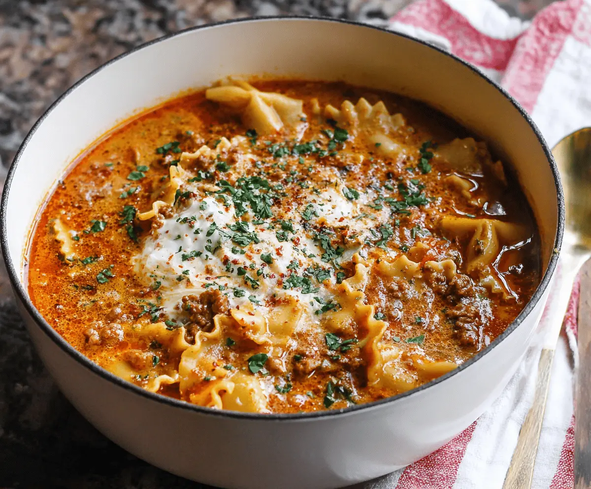 This One-Pot Creamy Lasagna Soup is like a warm hug in a bowl! Packed with pasta, cheese, and savory sauce, it has all the layers of traditional lasagna but in a cozy, creamy soup form.