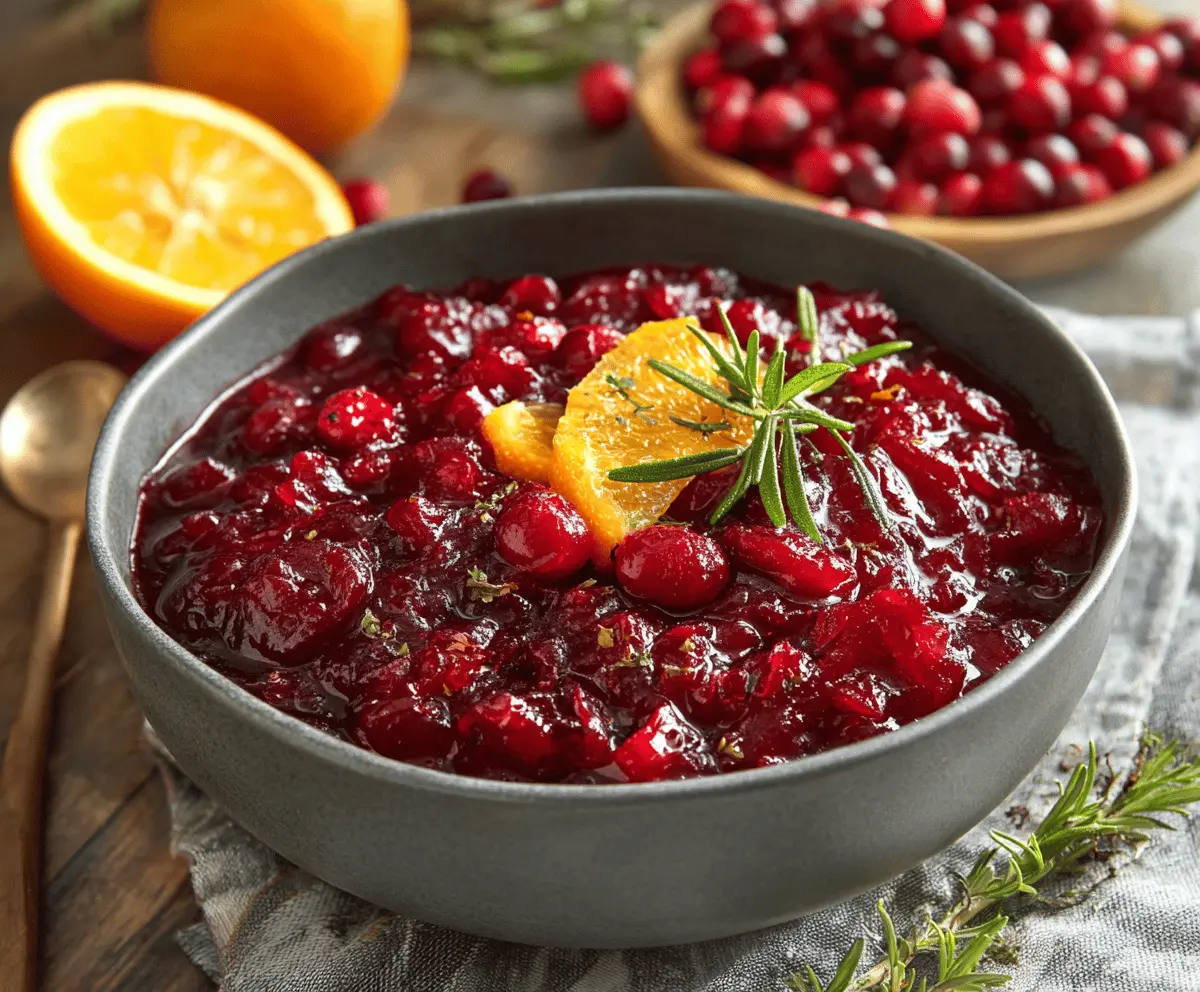 Transfer the cooled cranberry sauce to a serving bowl. If you want to make it pretty, you can garnish with fresh rosemary sprigs and orange slices on top. It’s all about presentation!