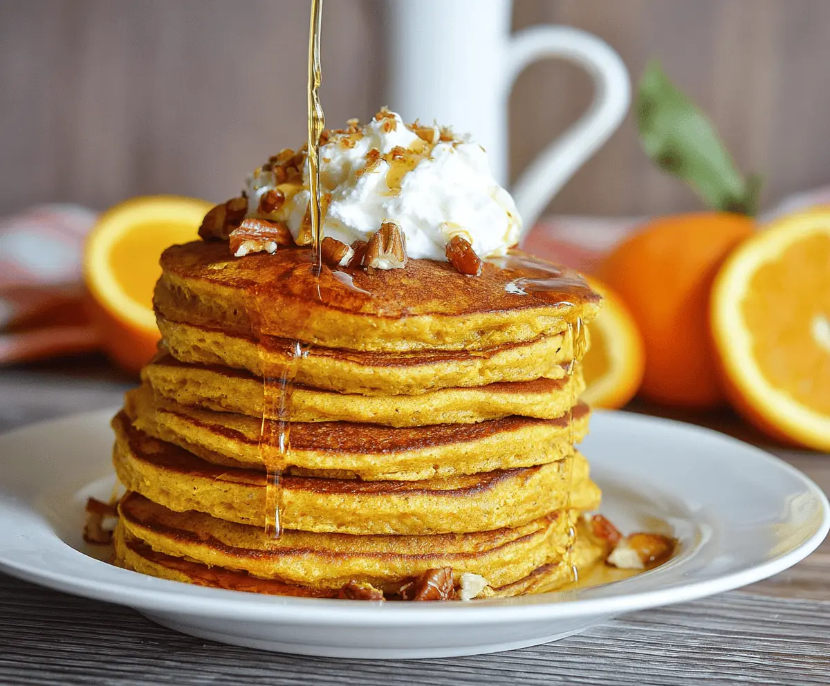 These orange pumpkin pancakes are fluffy and bright, perfect for a sunny morning! The sweet pumpkin and zesty orange give a tasty twist to your usual breakfast.